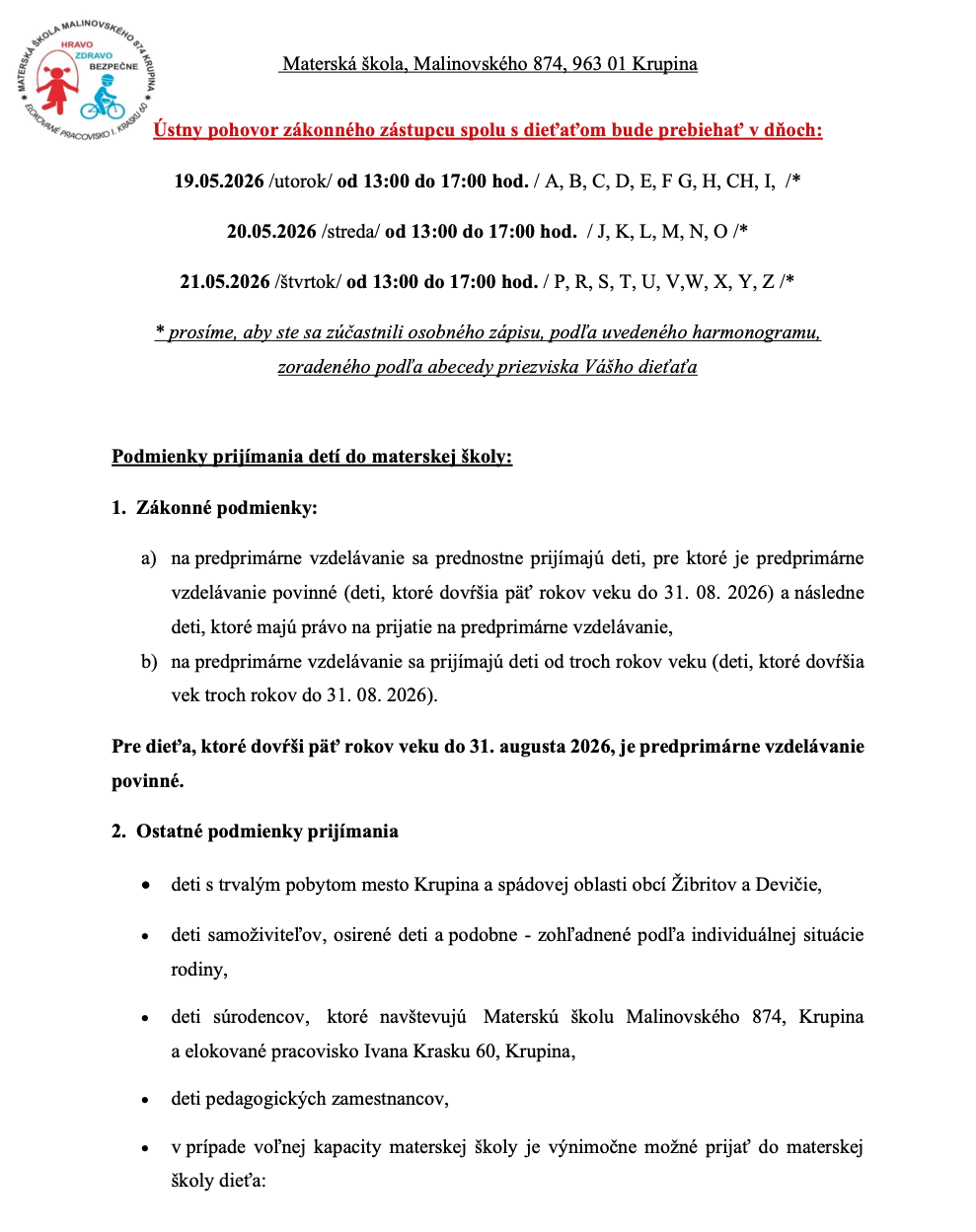 Dňa 22. apríla 2026 sme si v Materskej škole na Malinovského ulici a Ivana Krasku pripomenuli významný sviatok – Deň Zeme. Každá trieda oslávila tento deň prostredníctvom rôznorodých aktivít, ktoré boli prispôsobené vek