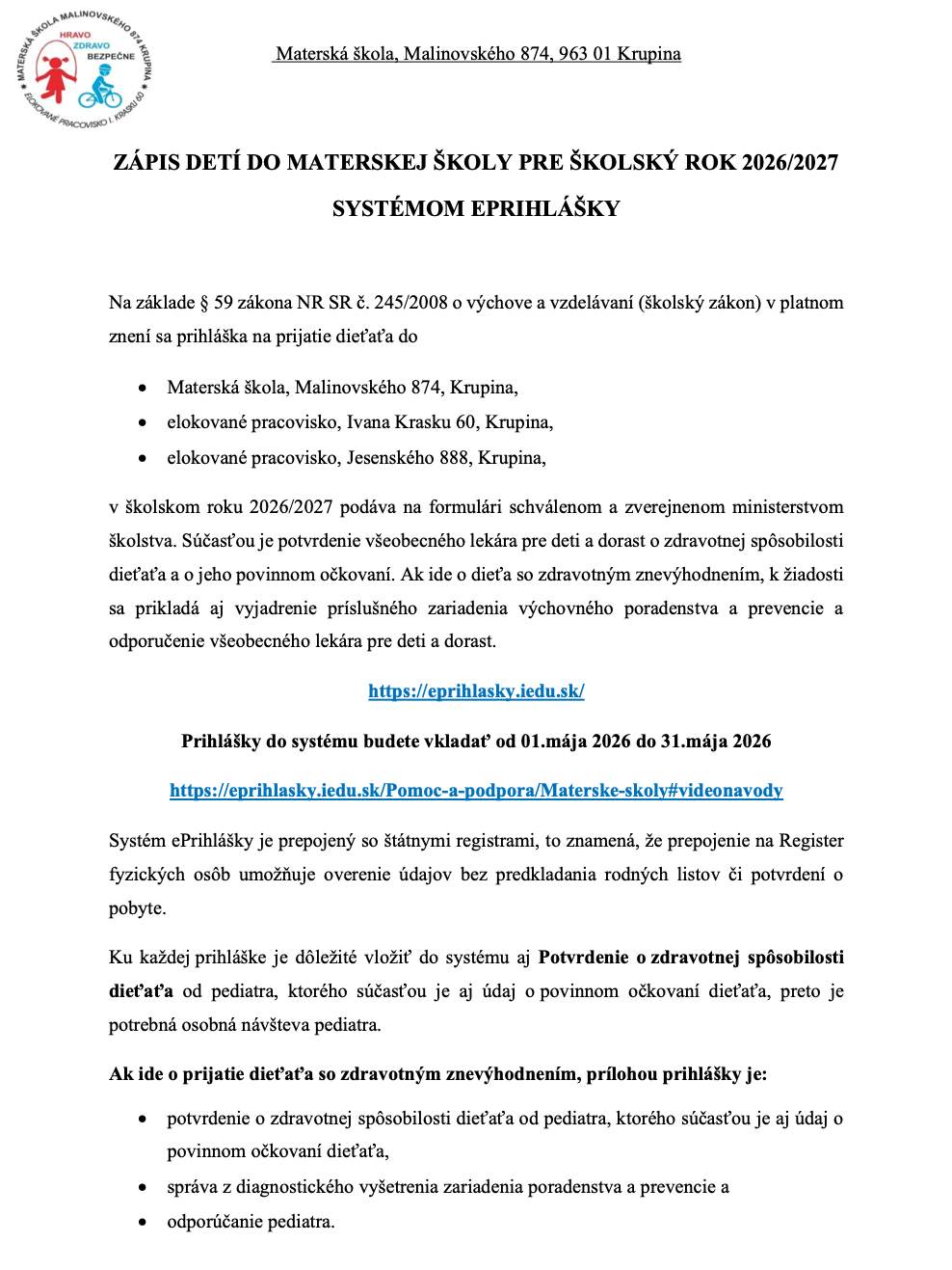 Dnes 17. februára 2026 sa v našej materskej škole Malinovského 874 s e.pracoviskom I.Krasku60, uskutočnilo školské kolo Spievaniek v materskej škole. Zúčastnilo sa16. speváčikov, ktorí postúpili takmer z každej triedy.
