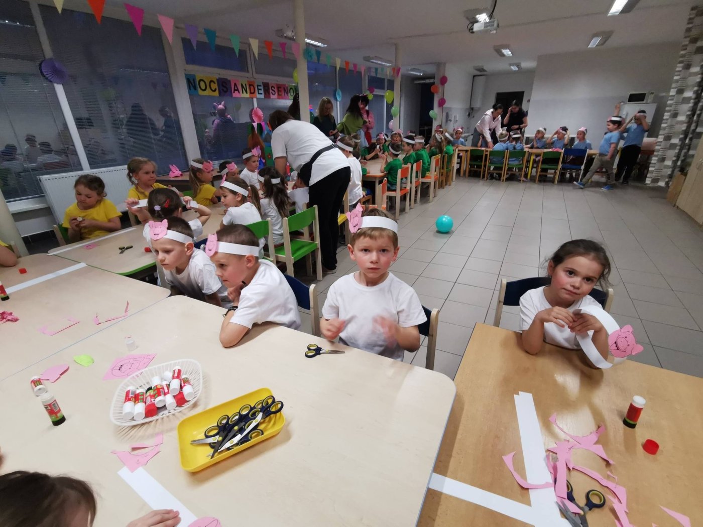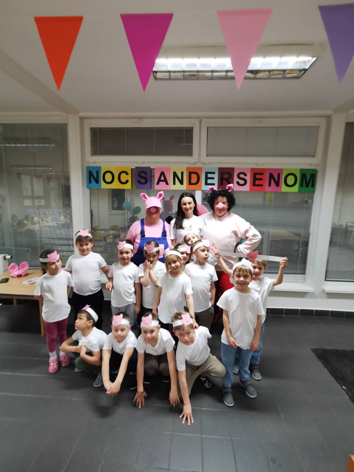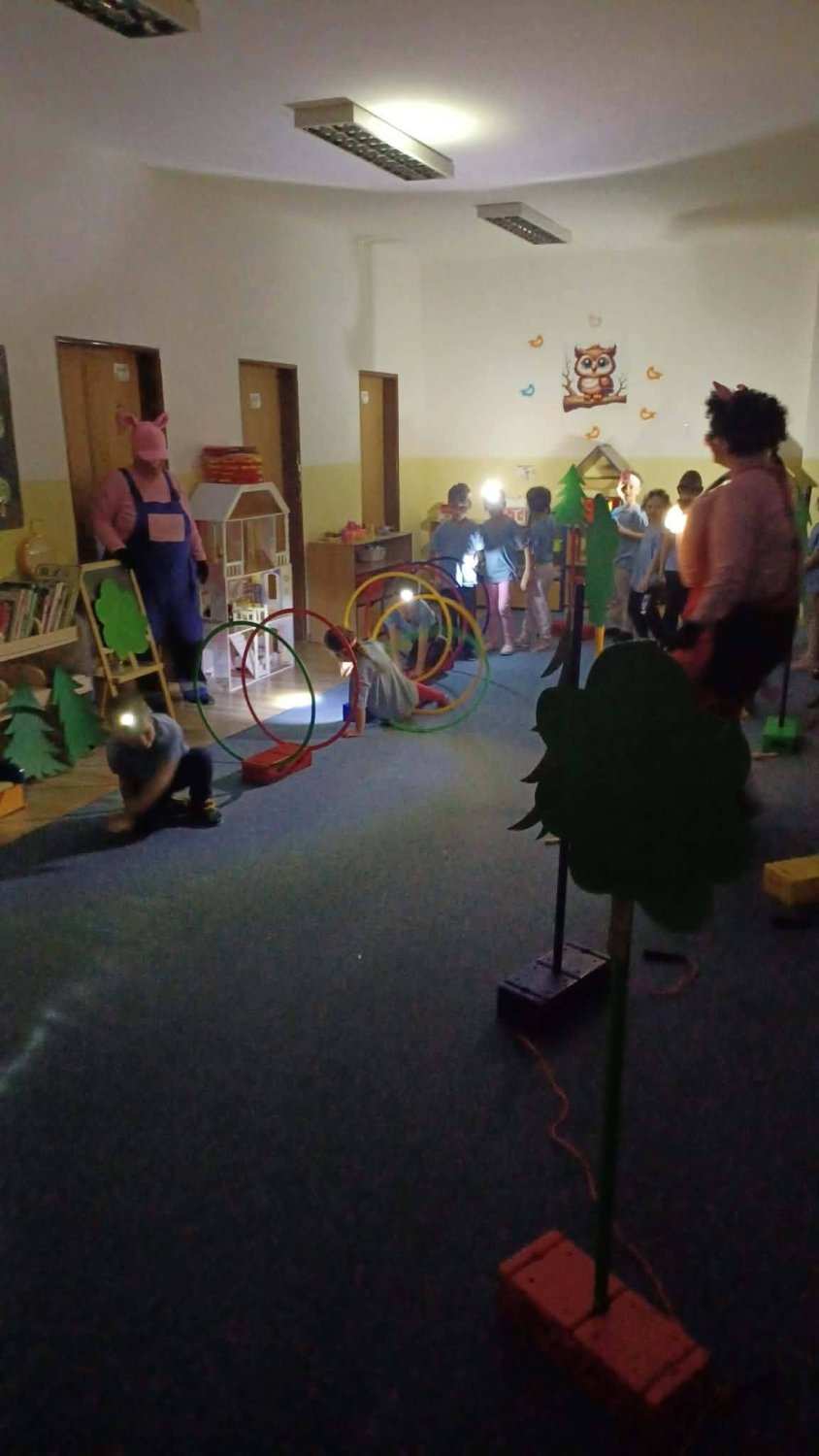 Po príchode do materskej školy deti privítali pani učiteľky a spoločne sa preniesli do rozprávkového sveta prasiatok. Dozvedeli sa, ako sa prasiatka vybrali na cestu do sveta, prekonávali prekážky a stretávali nových kamarátov. Počas večera sa deti vydali na nočnú dobrodružnú cestu s čelovkami po materskej škole, kde plnili rôzne úlohy na stanovištiach, ktoré vytvorili tajomnú a rozprávkovú atmosféru. Večer pokračoval kúzelníckym prekvapením a diskotékou. Neskôr sa deti vrátili do svojich tried, prezliekli do pyžama a tešili sa na nočné kino. Spoločne sme si pozreli animovanú rozprávku Lorax.