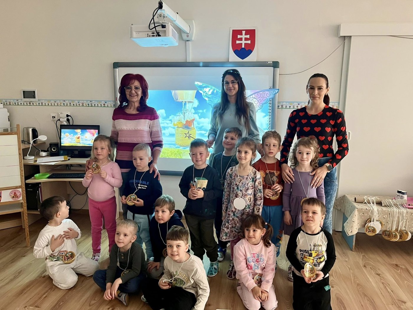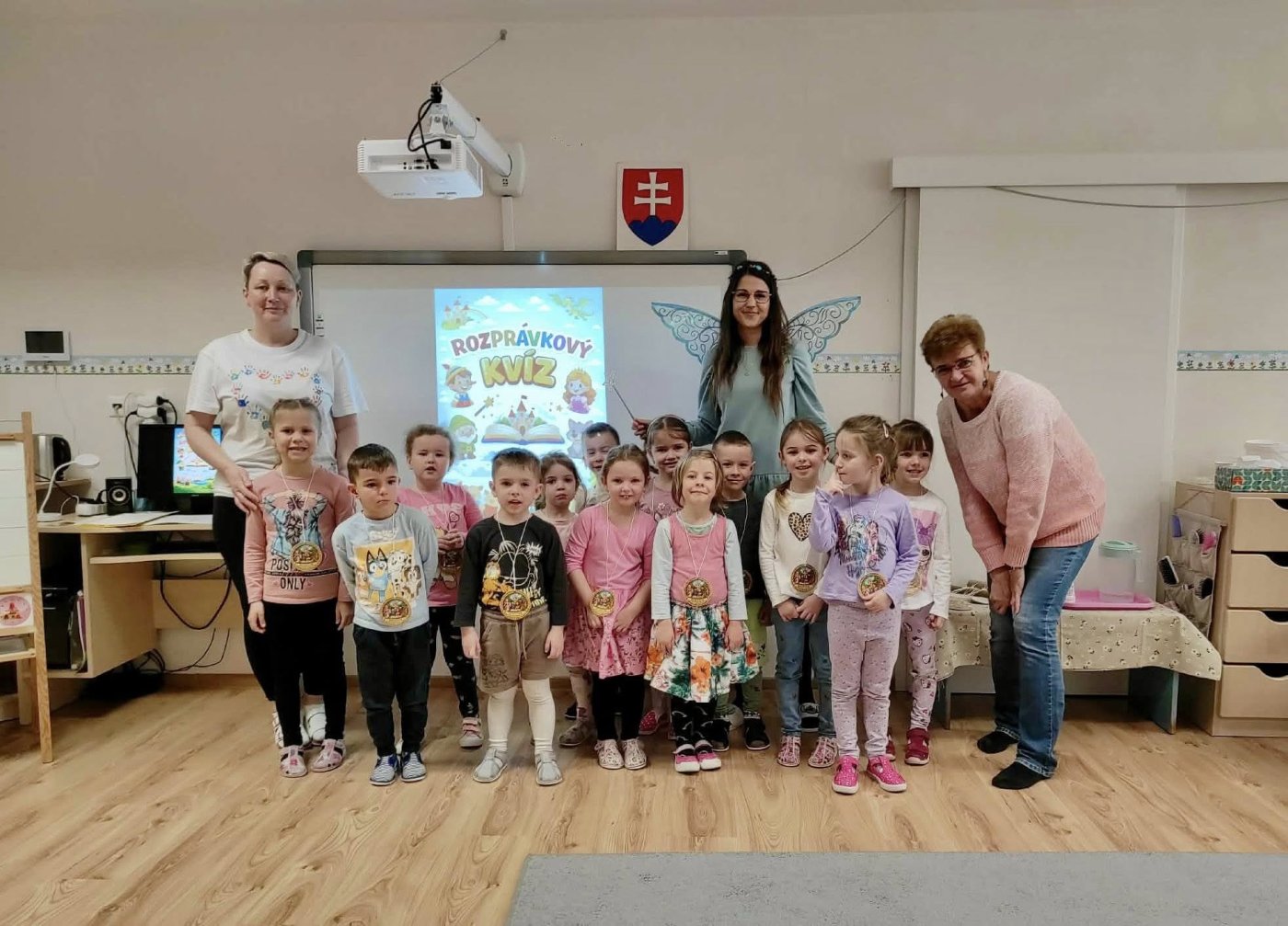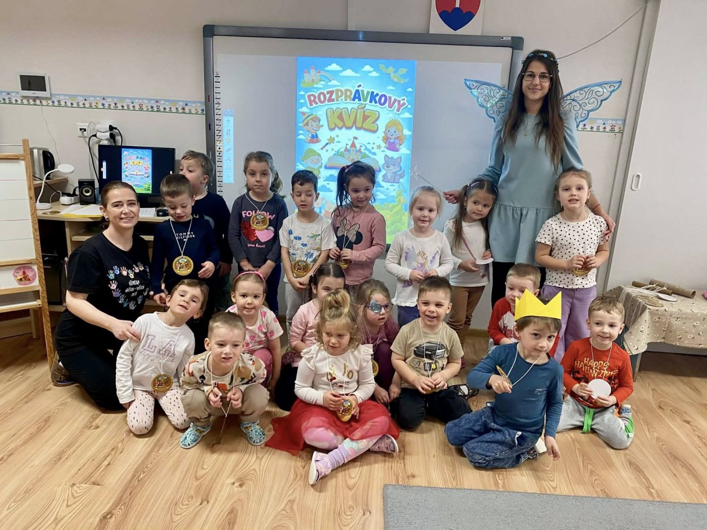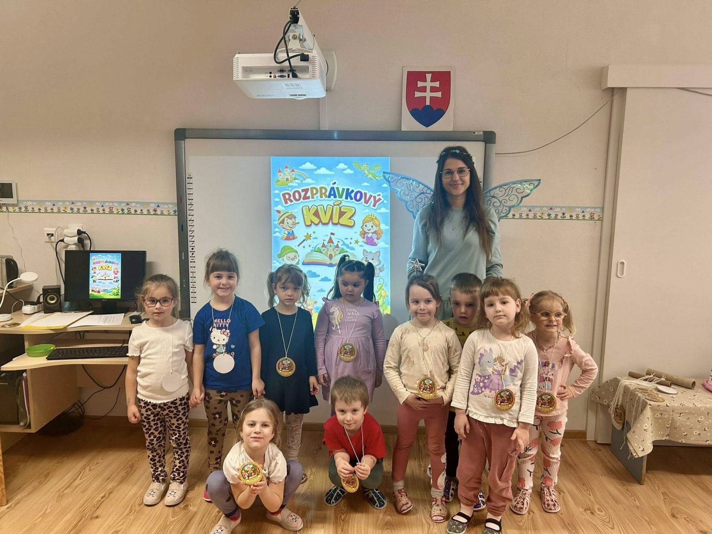 V našej materskej škole sa konal veselý rozprávkový kvíz. Deti si preverili svoje vedomosti o známych rozprávkach a rozprávkových postavičkách. S veľkým nadšením hádali a odpovedali na rozprávkové otázky. Za svoju šikovnosť sa všetky deti stali majstrami rozprávkového sveta a na pamiatku získali medailu. Najdôležitejšie však bolo, že radosť zo spoločnej hry bola veľká a na konci sa všetci stali víťazmi.