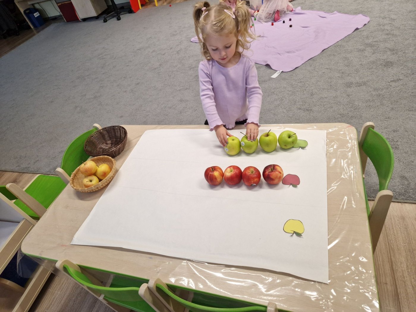 zdravie. Deti jablká pozorovali, počítali, porovnávali ich veľkosť aj farbu a